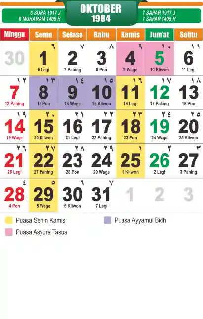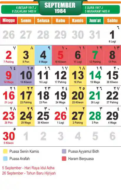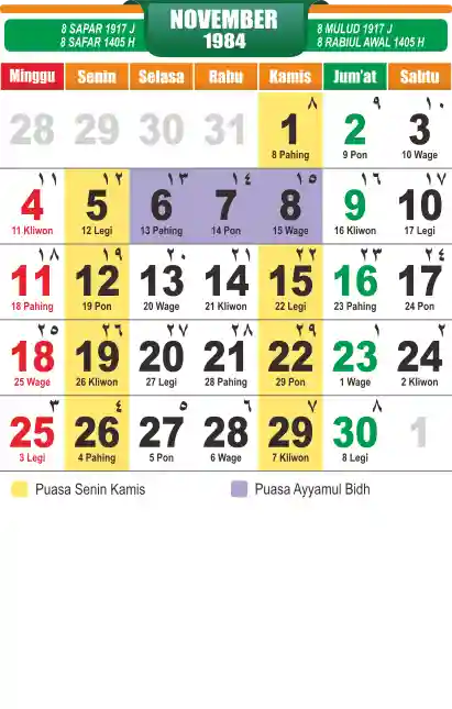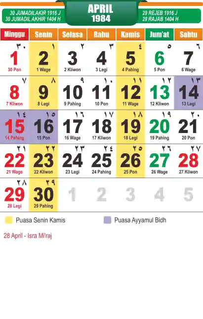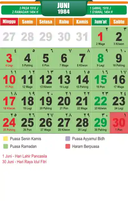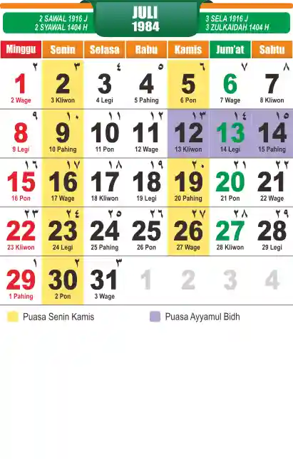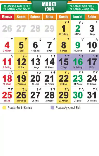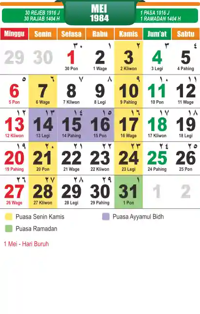 Template kalender puasa 1984, cocok sekali buat anda yang ingin cetak kalender yang bermanfat buat umat.
