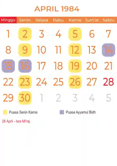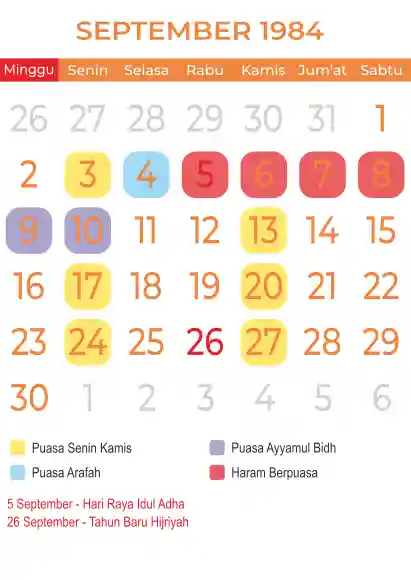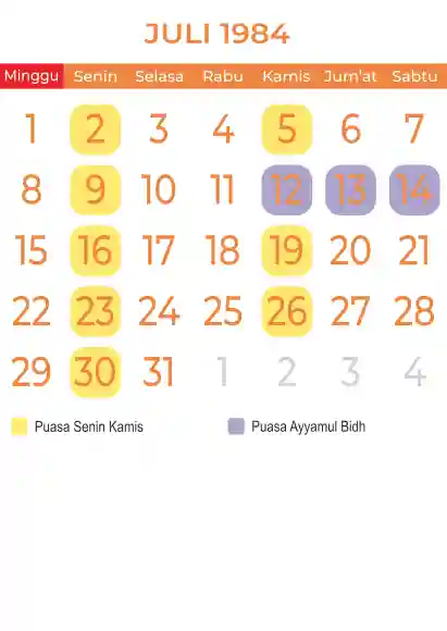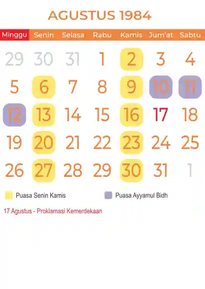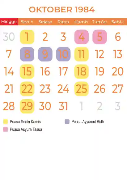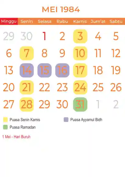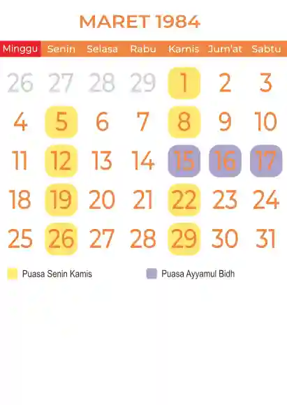 Template kalender puasa 1984, Versi yang lebih simple, cocok sekali buat anda yang ingin cetak kalender yang bermanfat buat umat.