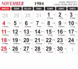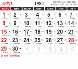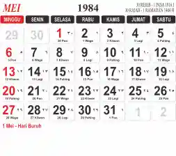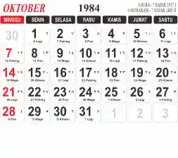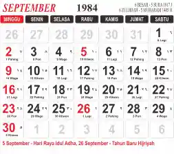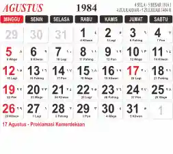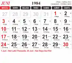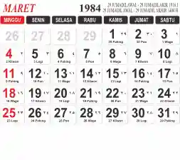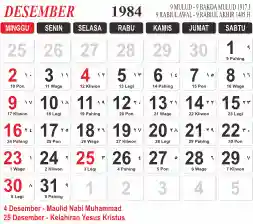 List hari libur tahun 1984 pada Tema 3 (Wide)