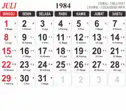 Tema kalender 1984 yang cocok buat desain kalender yang lebih lebar, cocok buat kalender kantor atau desain yang lebih minimalis.