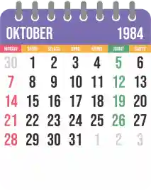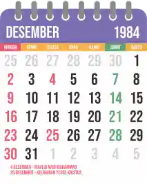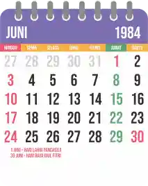 Template kalender 1984 yang bertemakan lucu dan moderen. Bentuknya simple tanpa tanggal hijriah dan tanggal jawa. Cocok buat kebutuhan kalender yang sifatnya universal.