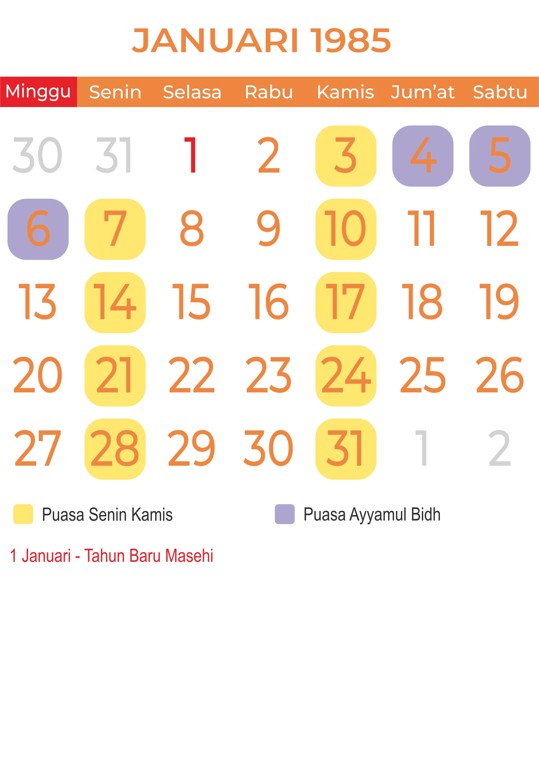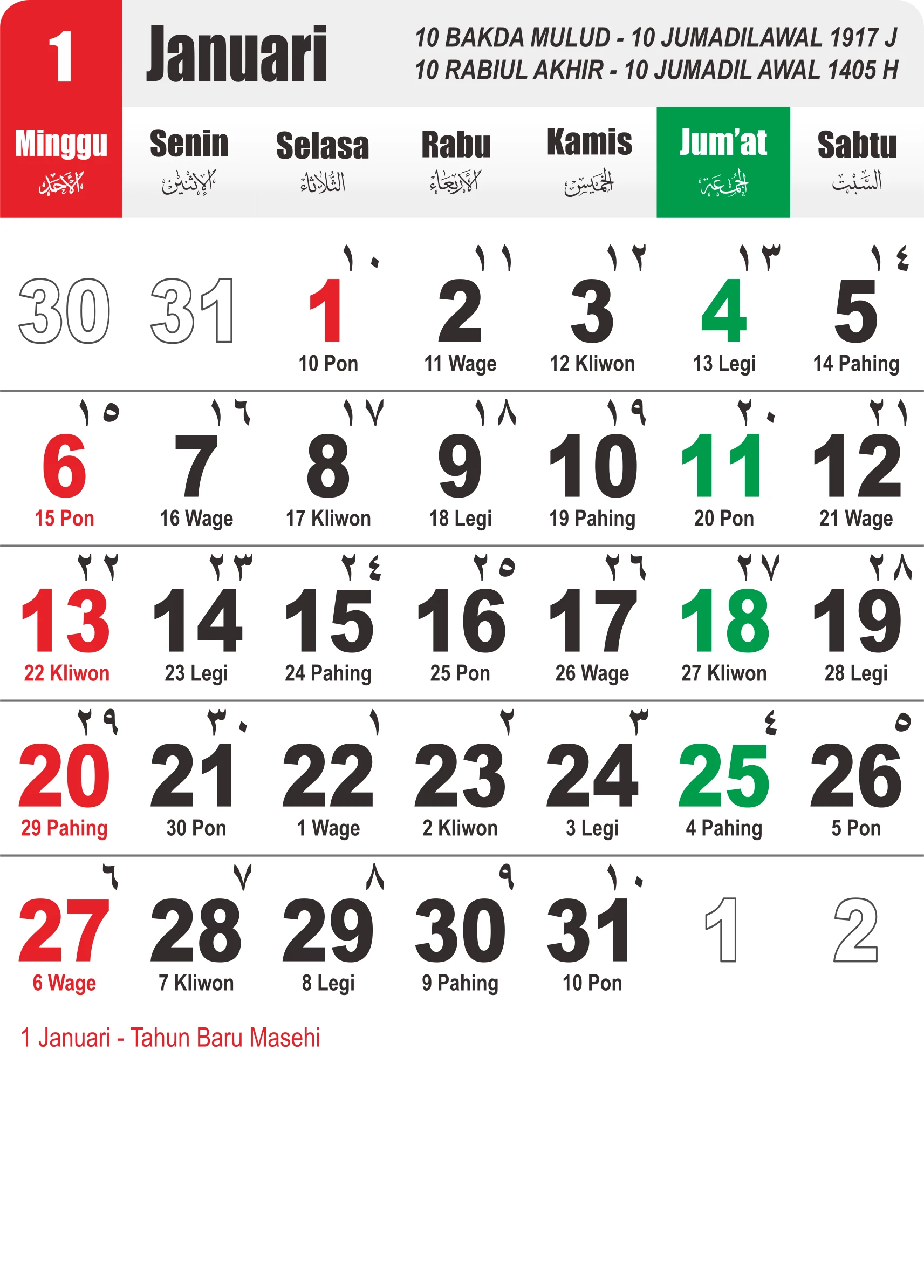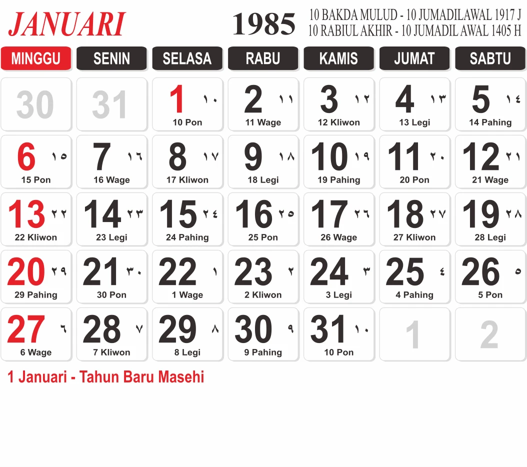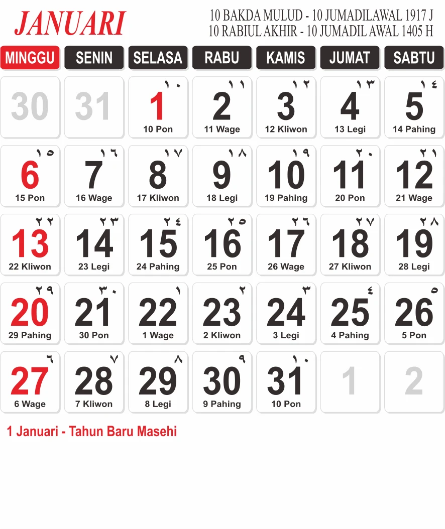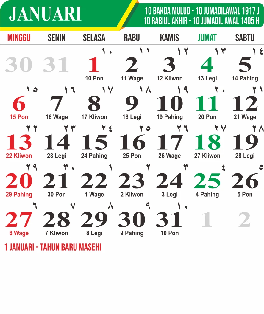 Template Kalender Jawa + Hijriah Vector