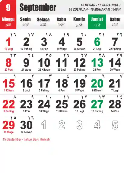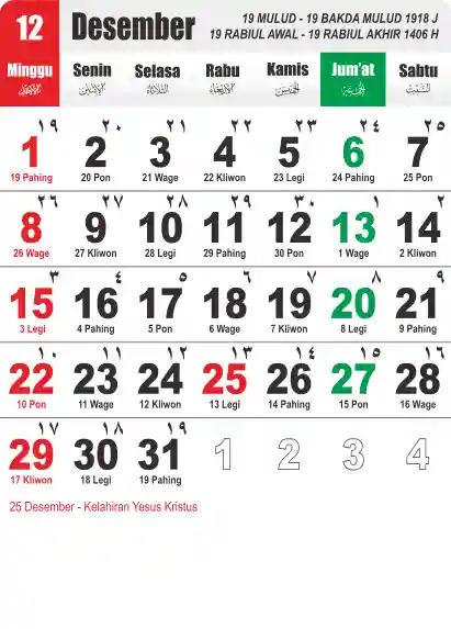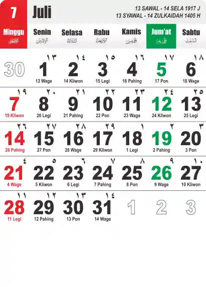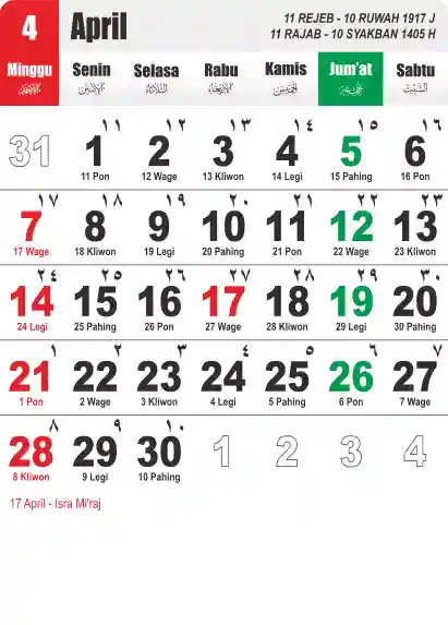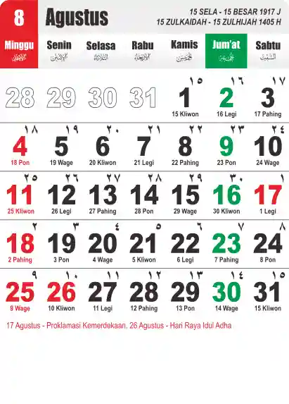 Template Kalender Jawa + Hijriah Vector