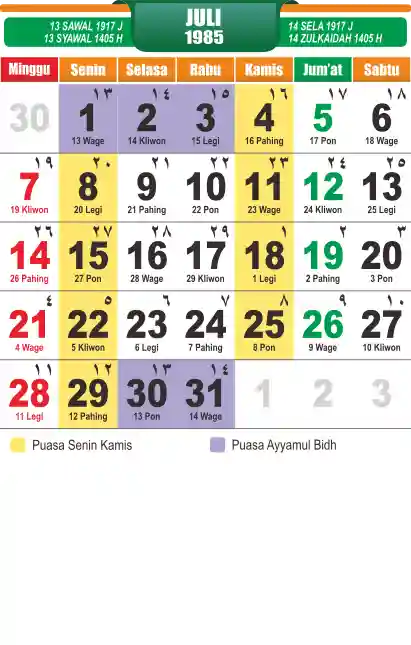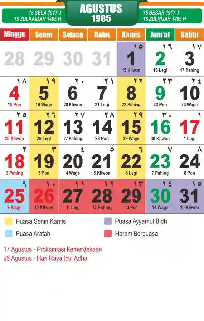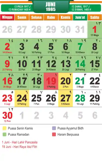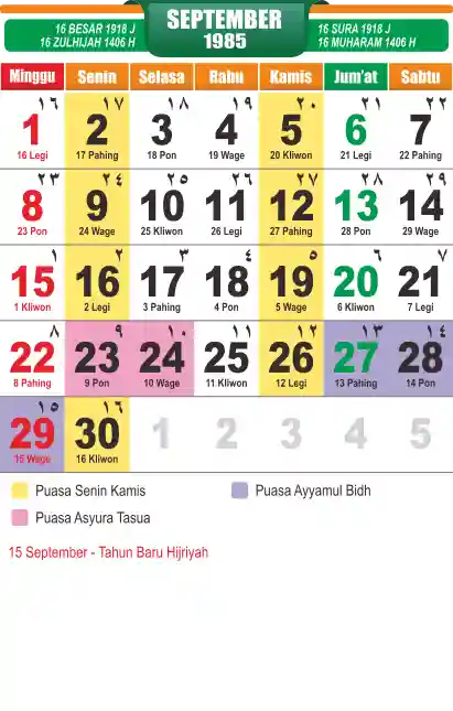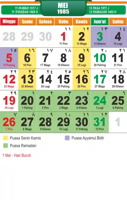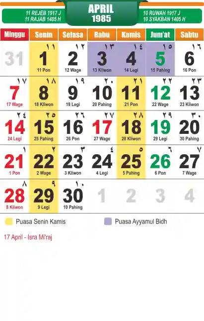 Template kalender puasa 1985, cocok sekali buat anda yang ingin cetak kalender yang bermanfat buat umat.