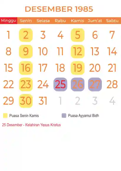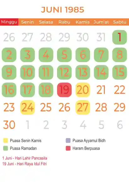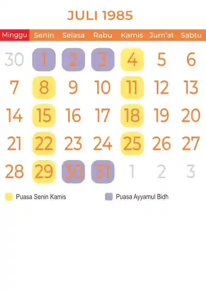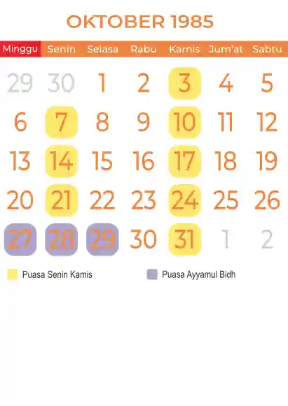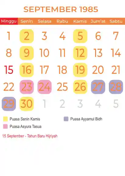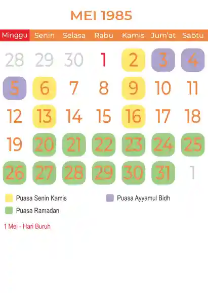 Template kalender puasa 1985, Versi yang lebih simple, cocok sekali buat anda yang ingin cetak kalender yang bermanfat buat umat.