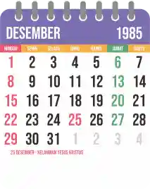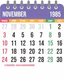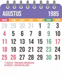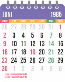 Template kalender 1985 yang bertemakan lucu dan moderen. Bentuknya simple tanpa tanggal hijriah dan tanggal jawa. Cocok buat kebutuhan kalender yang sifatnya universal.