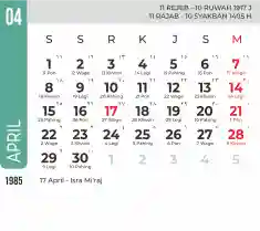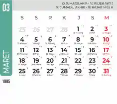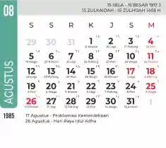 Template kalender 1985 dengan konsep minimalis modern dengan warna yang soft, cocok sekali buat kantor / bisnis seperti bank.