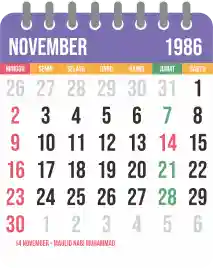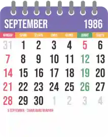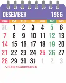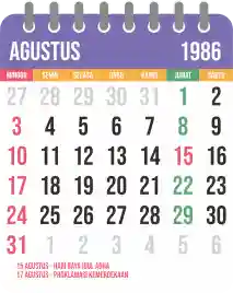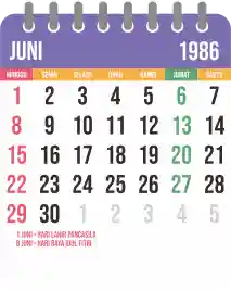 Template kalender 1986 yang bertemakan lucu dan moderen. Bentuknya simple tanpa tanggal hijriah dan tanggal jawa. Cocok buat kebutuhan kalender yang sifatnya universal.