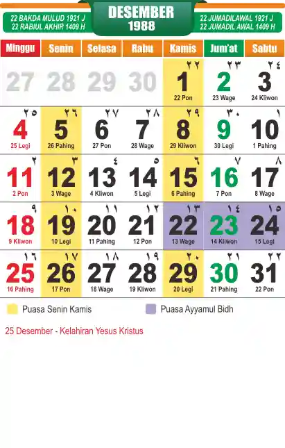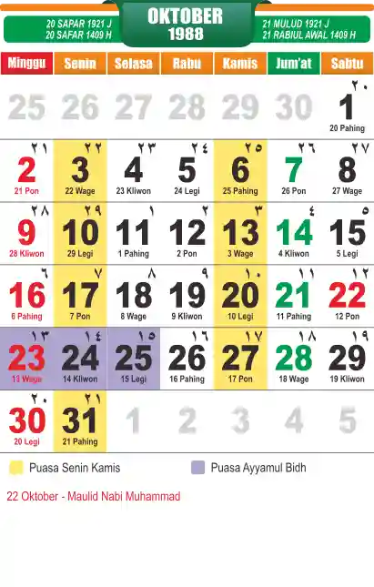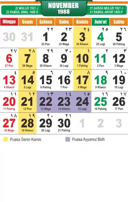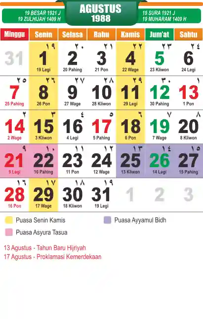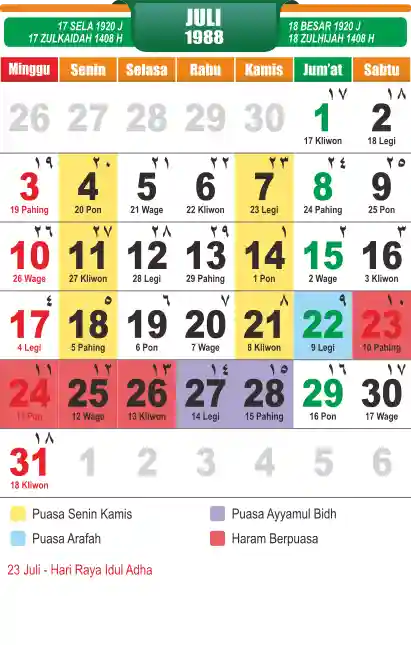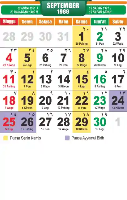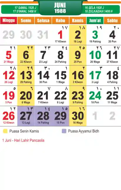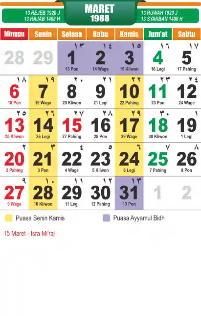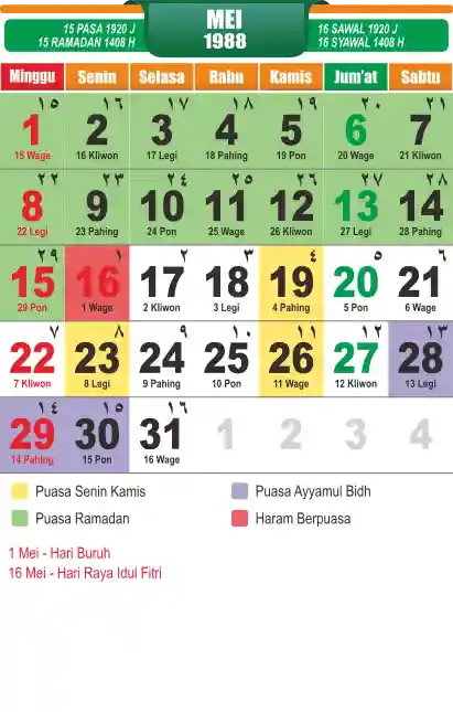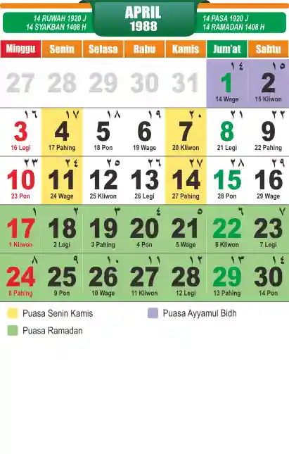 Template kalender puasa 1988, cocok sekali buat anda yang ingin cetak kalender yang bermanfat buat umat.