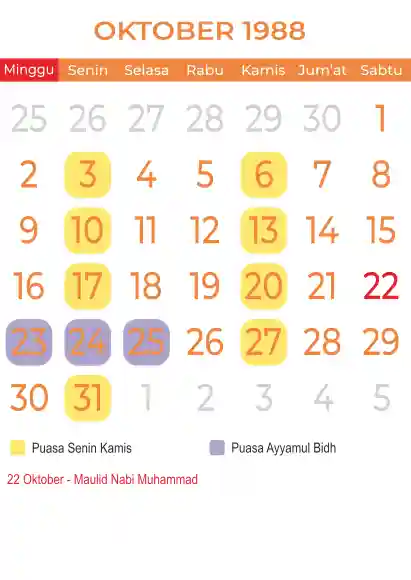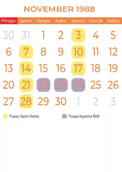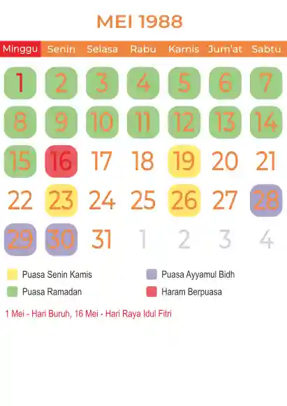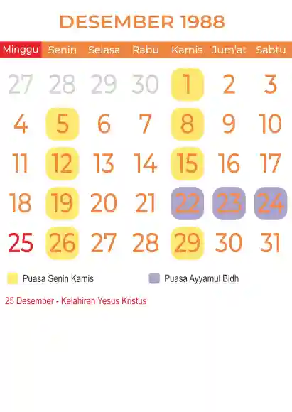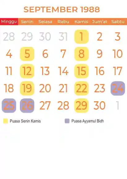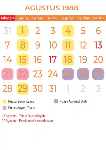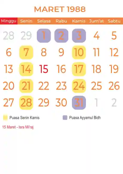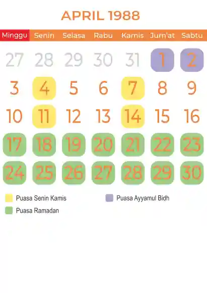 Template kalender puasa 1988, Versi yang lebih simple, cocok sekali buat anda yang ingin cetak kalender yang bermanfat buat umat.