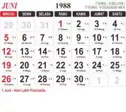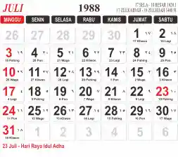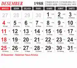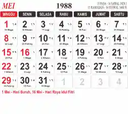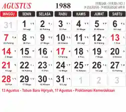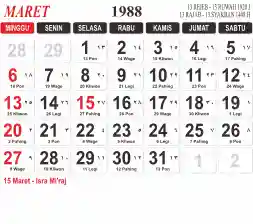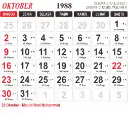 List hari libur tahun 1988 pada Tema 3 (Wide)