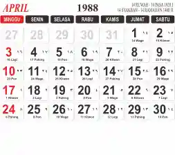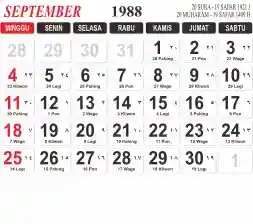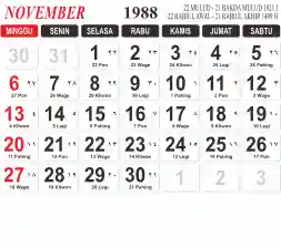Tema kalender 1988 yang cocok buat desain kalender yang lebih lebar, cocok buat kalender kantor atau desain yang lebih minimalis.