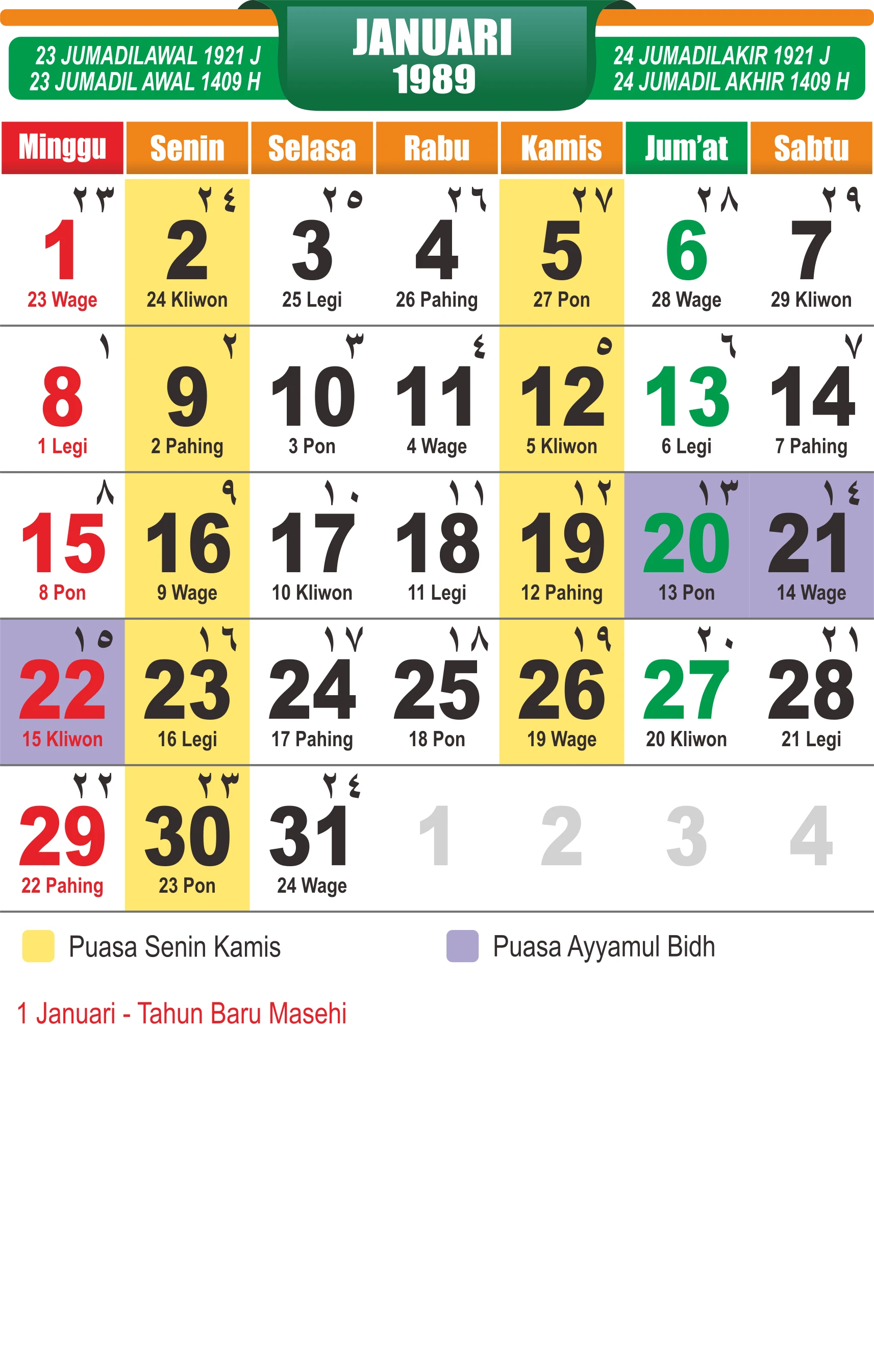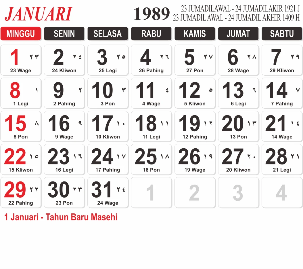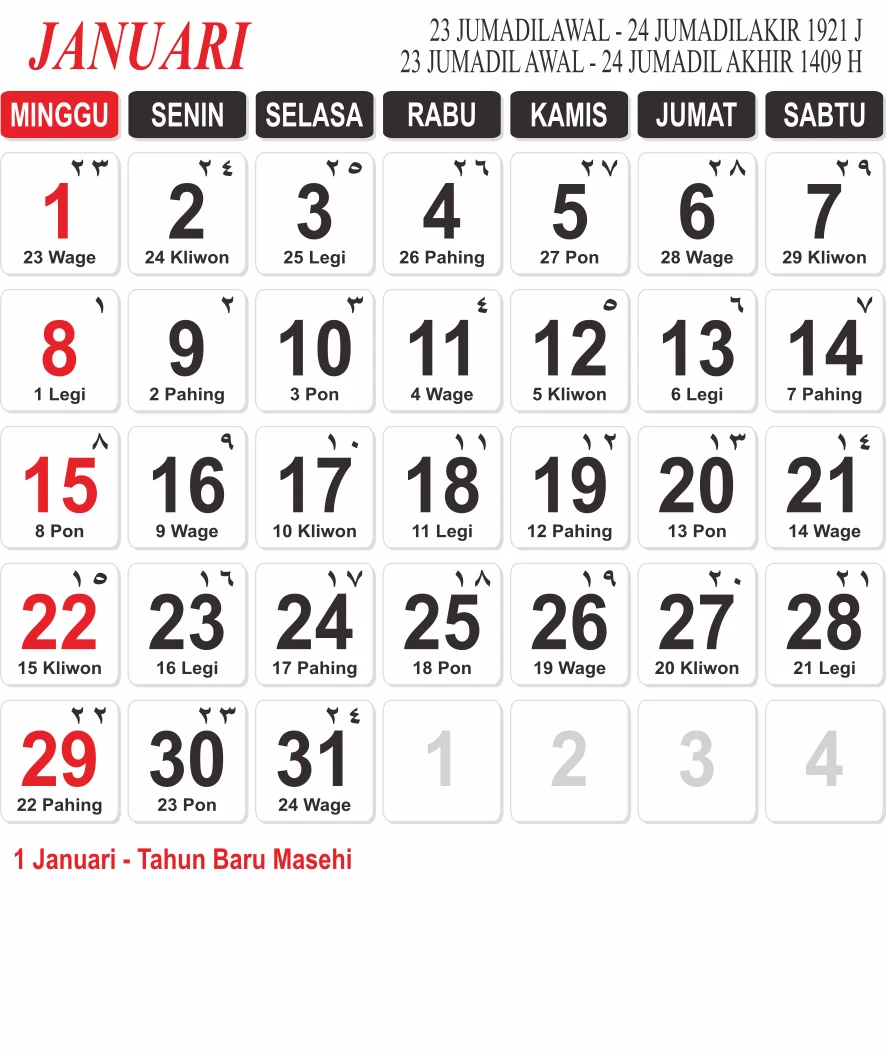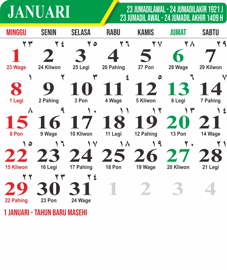 Template Kalender Jawa + Hijriah Vector