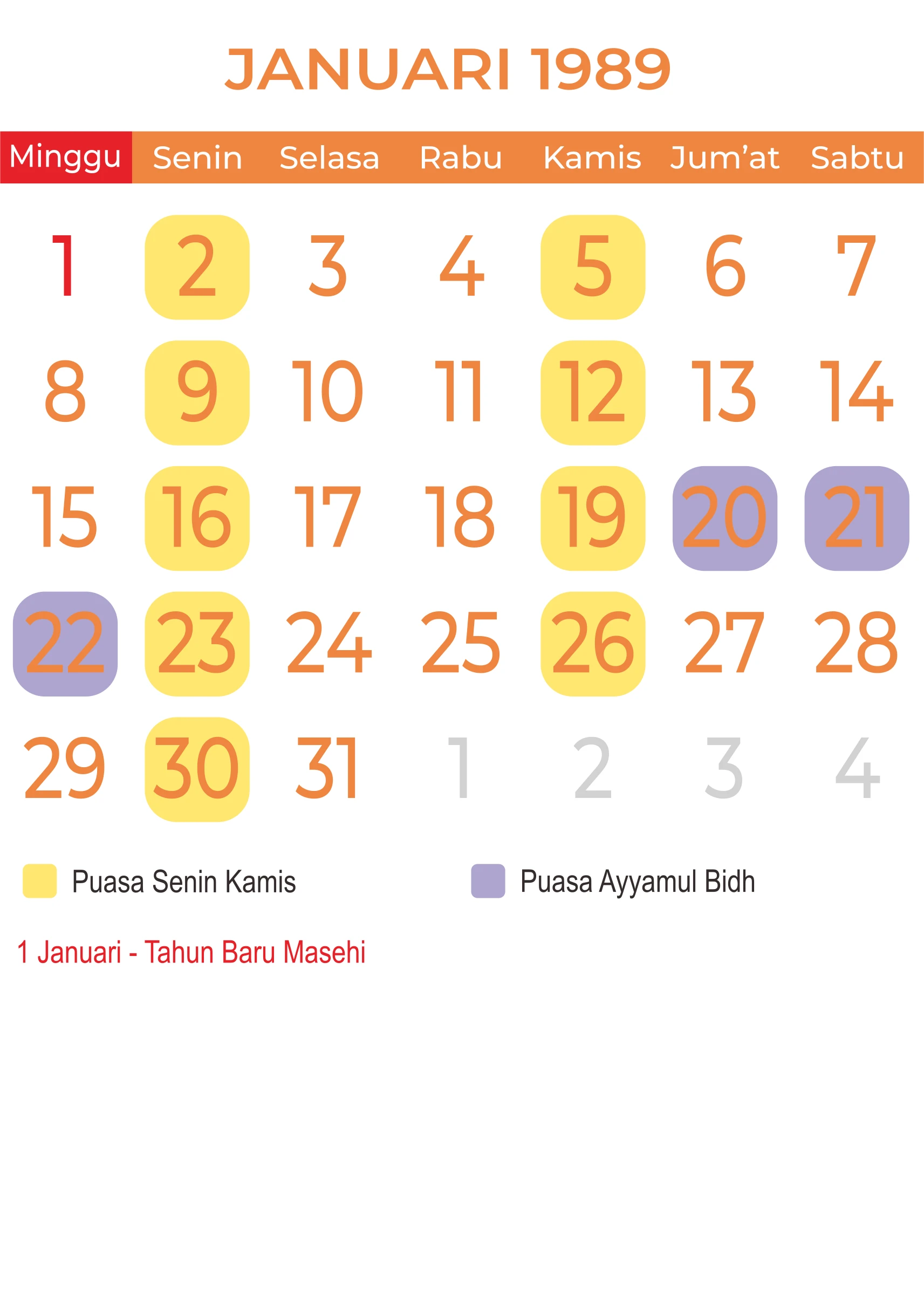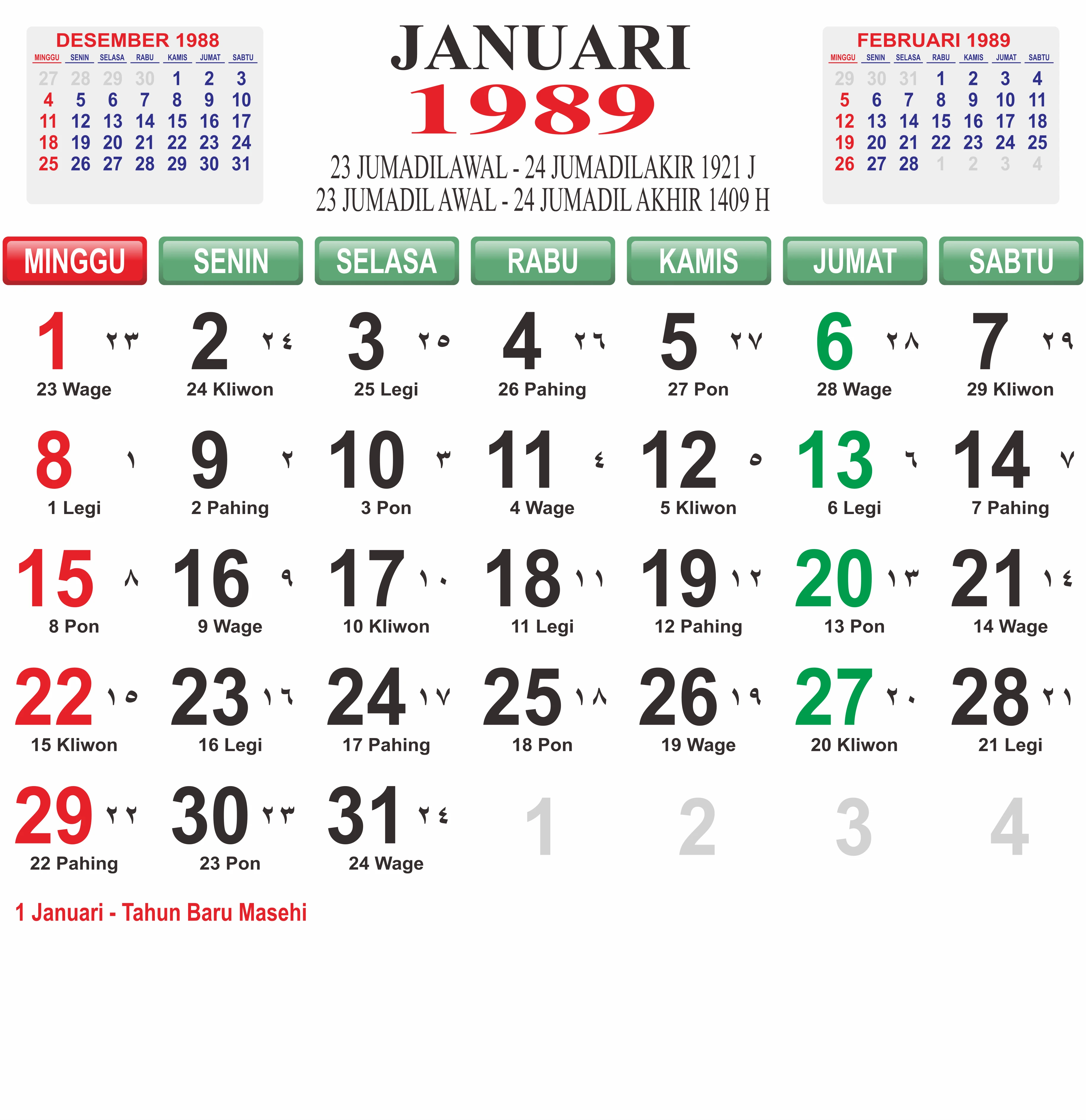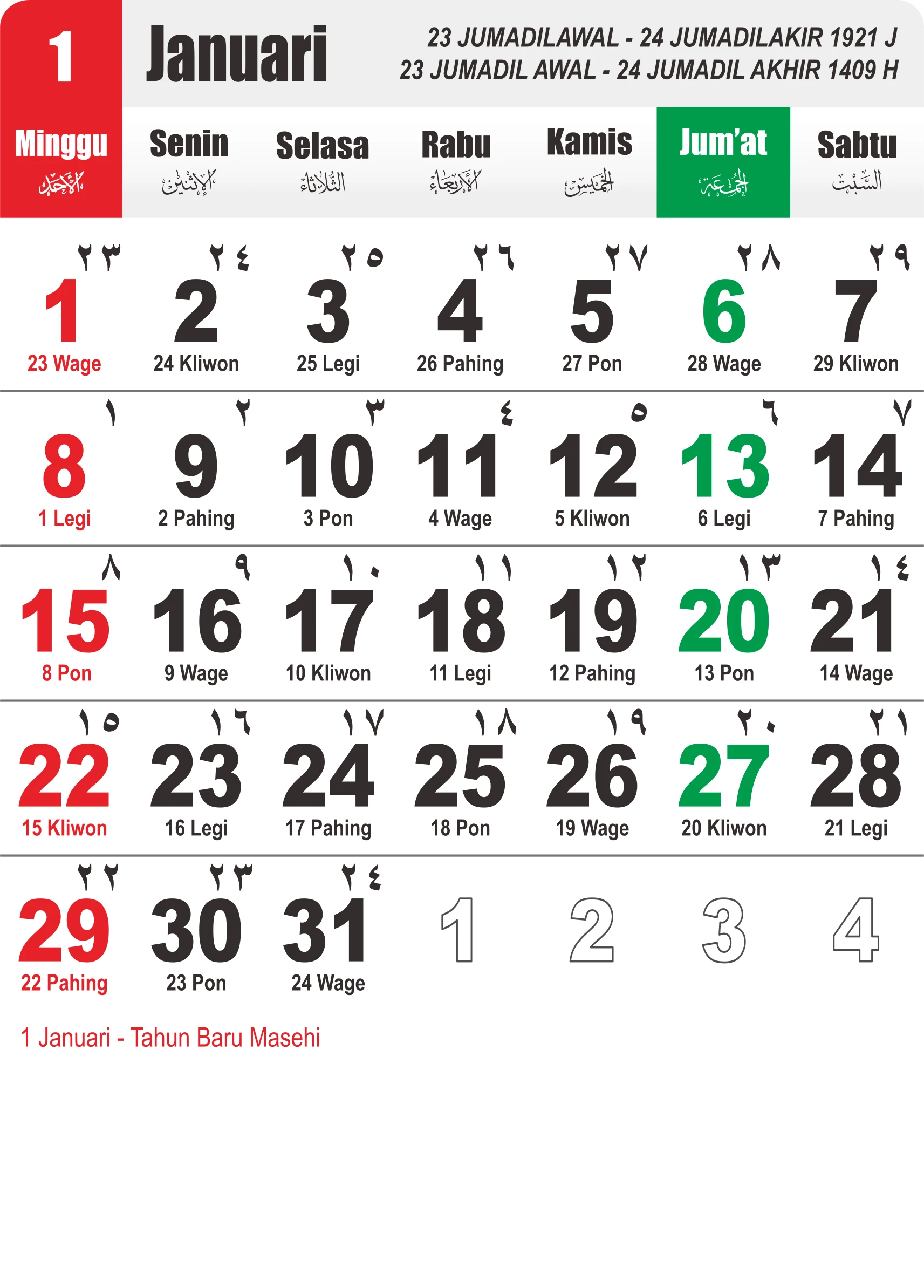 Template Kalender Jawa + Hijriah Vector