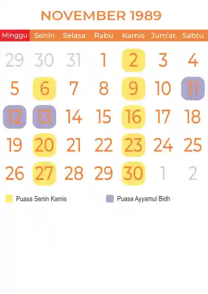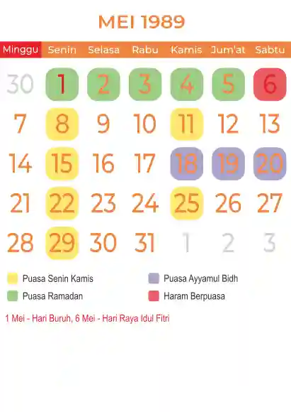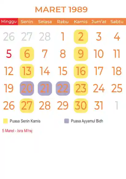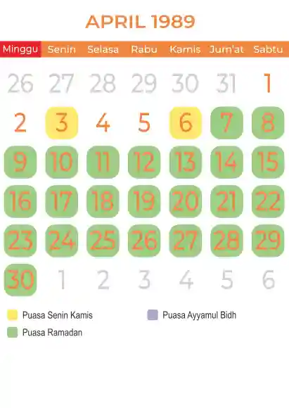 Template kalender puasa 1989, Versi yang lebih simple, cocok sekali buat anda yang ingin cetak kalender yang bermanfat buat umat.