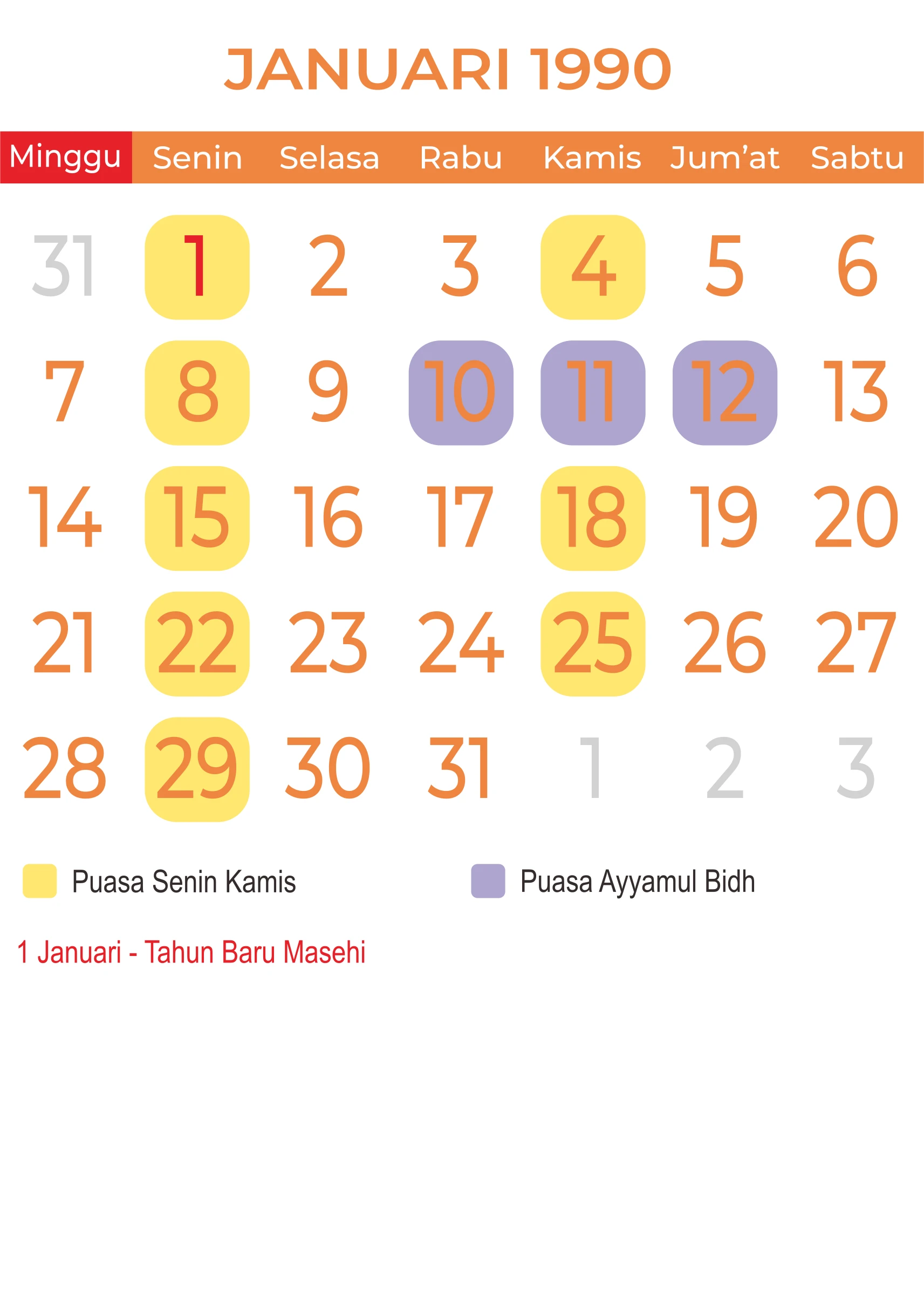 Dapatkan akses vector template kalender 1990 dengan berbagai tema, file editable, warna CMYK / RGB untuk CorelDRAW.