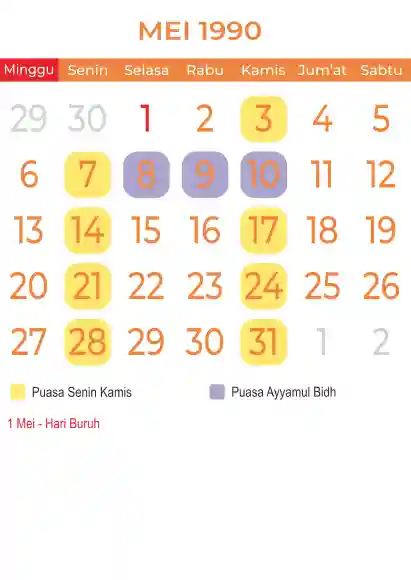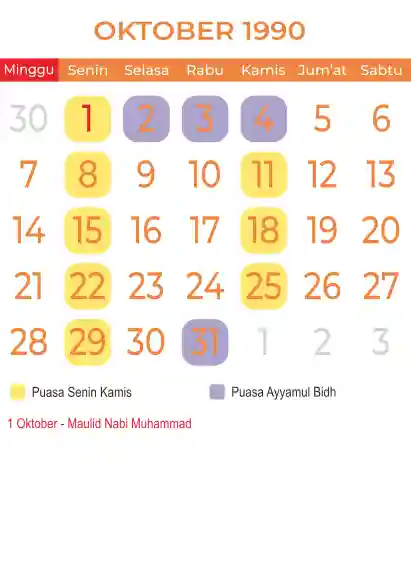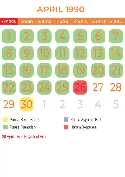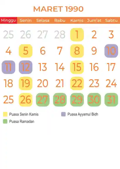 Template kalender puasa 1990, Versi yang lebih simple, cocok sekali buat anda yang ingin cetak kalender yang bermanfat buat umat.