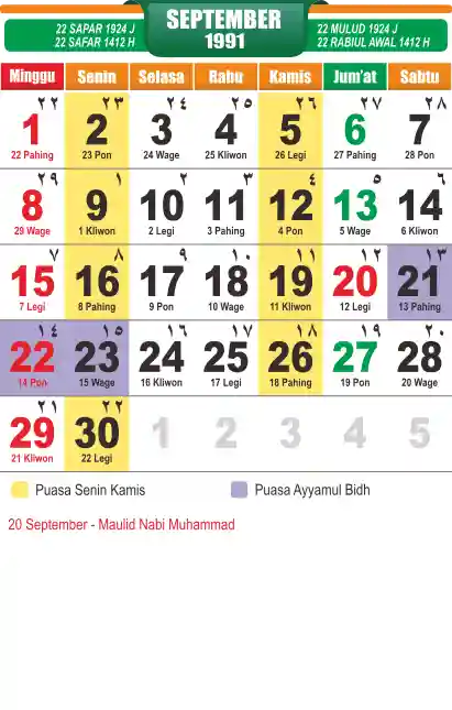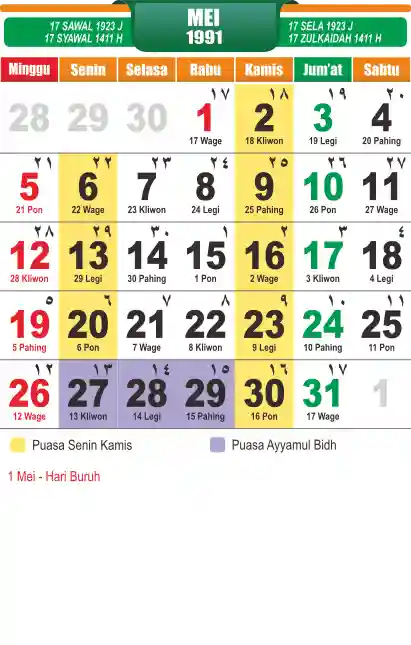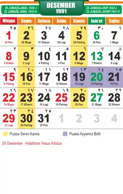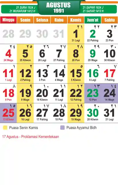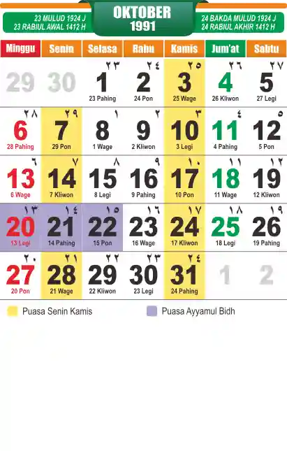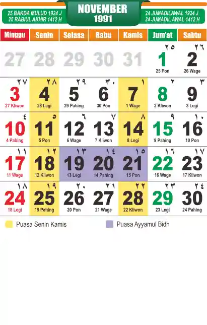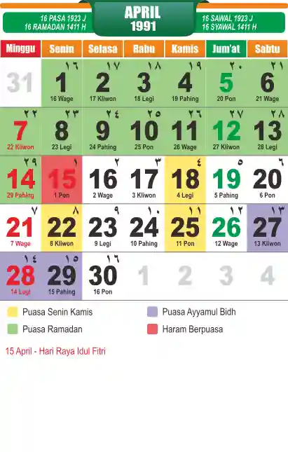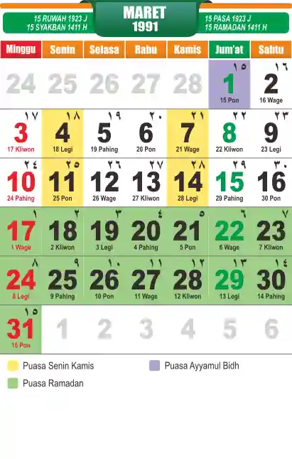 Template kalender puasa 1991, cocok sekali buat anda yang ingin cetak kalender yang bermanfat buat umat.