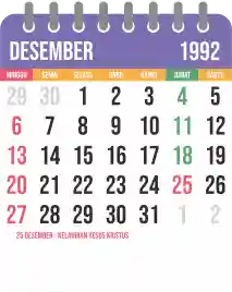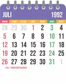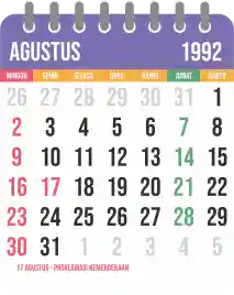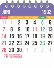 Template kalender 1992 yang bertemakan lucu dan moderen. Bentuknya simple tanpa tanggal hijriah dan tanggal jawa. Cocok buat kebutuhan kalender yang sifatnya universal.