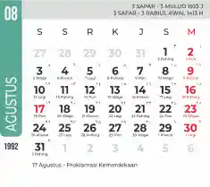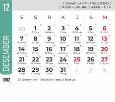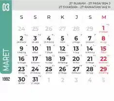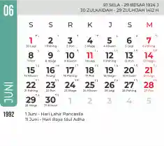 Template kalender 1992 dengan konsep minimalis modern dengan warna yang soft, cocok sekali buat kantor / bisnis seperti bank.