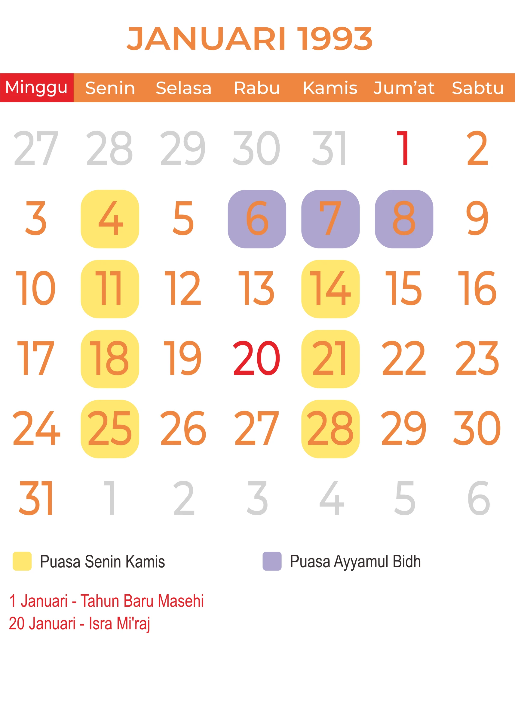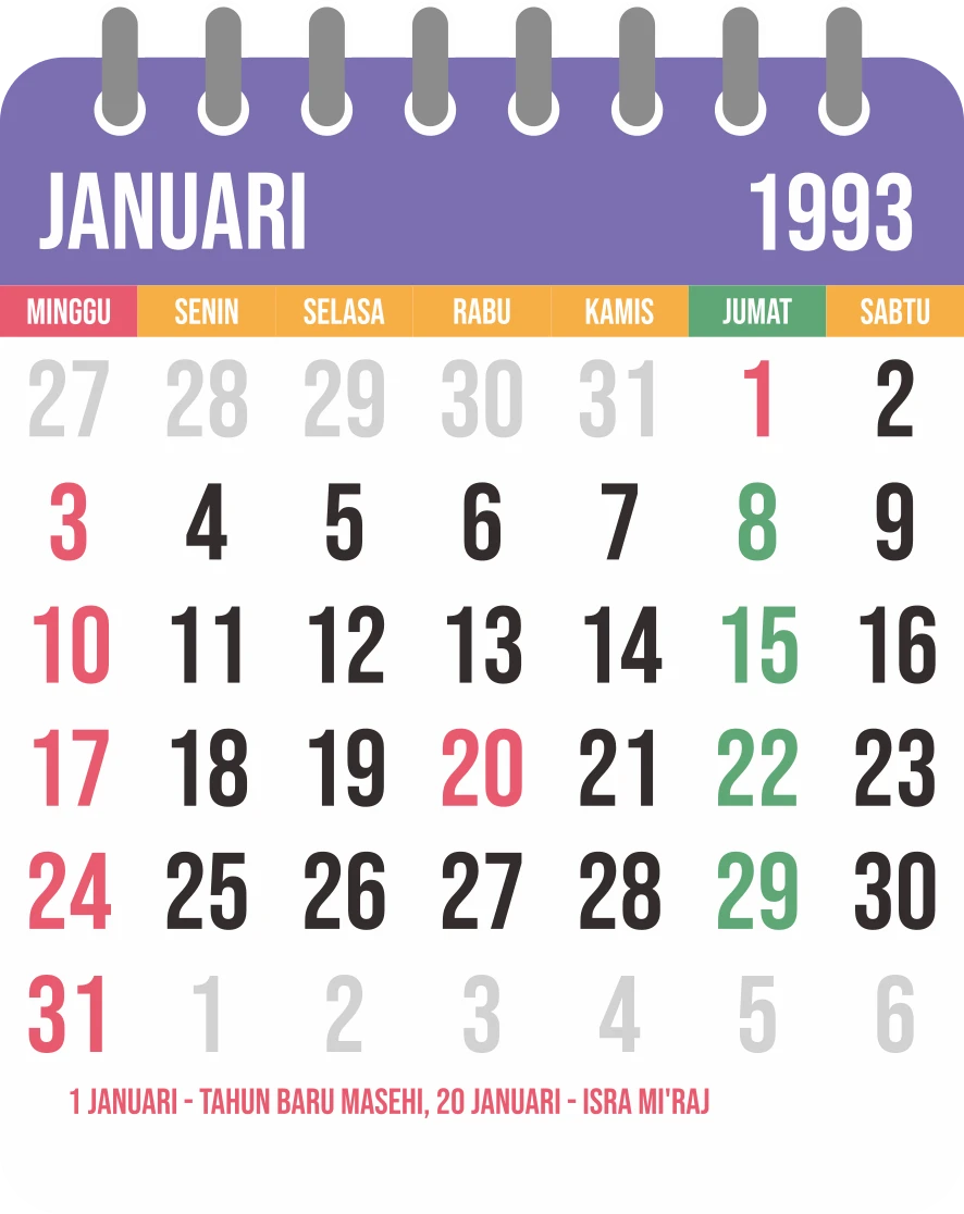 Dapatkan akses vector template kalender 1993 dengan berbagai tema, file editable, warna CMYK / RGB untuk CorelDRAW.