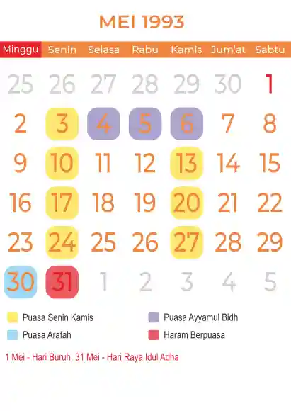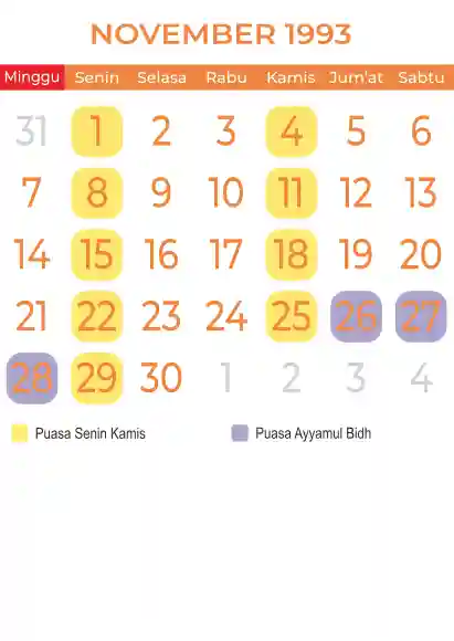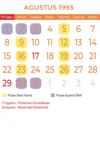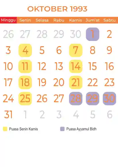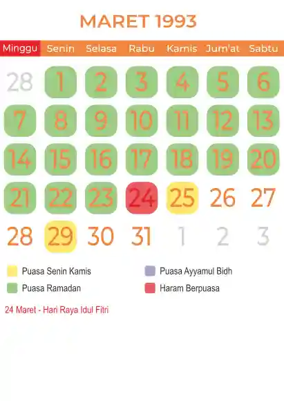 Template kalender puasa 1993, Versi yang lebih simple, cocok sekali buat anda yang ingin cetak kalender yang bermanfat buat umat.
