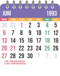 Template kalender 1993 yang bertemakan lucu dan moderen. Bentuknya simple tanpa tanggal hijriah dan tanggal jawa. Cocok buat kebutuhan kalender yang sifatnya universal.