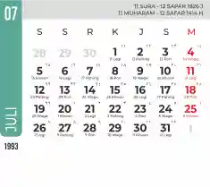 List hari libur tahun 1993 pada Tema 7