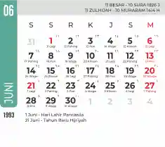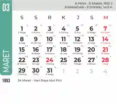 Template kalender 1993 dengan konsep minimalis modern dengan warna yang soft, cocok sekali buat kantor / bisnis seperti bank.