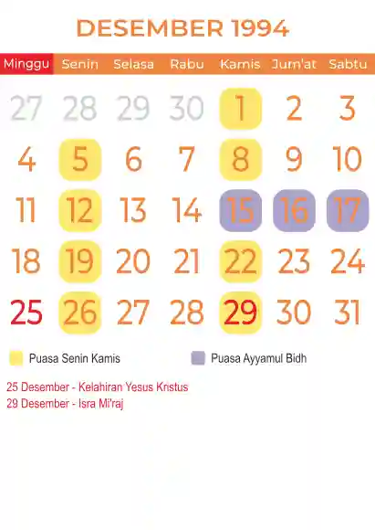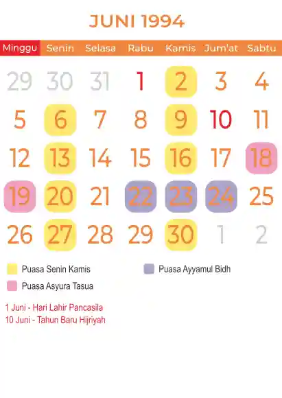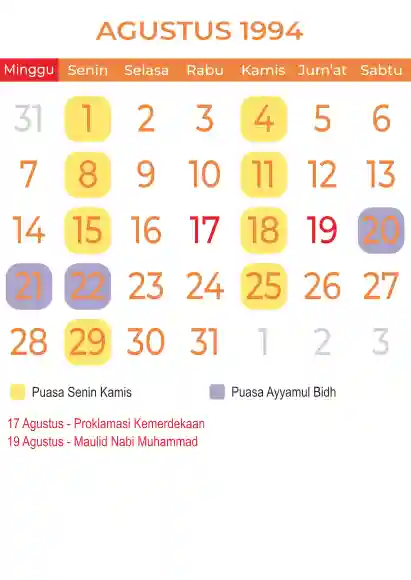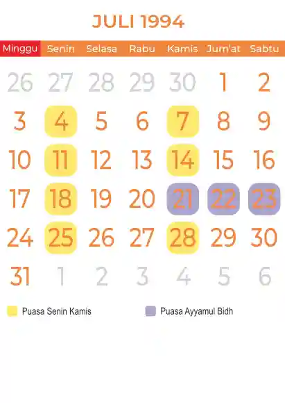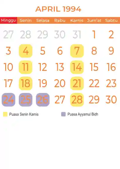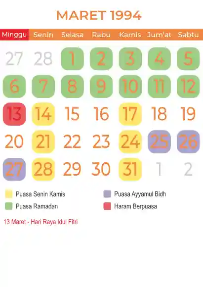 Template kalender puasa 1994, Versi yang lebih simple, cocok sekali buat anda yang ingin cetak kalender yang bermanfat buat umat.