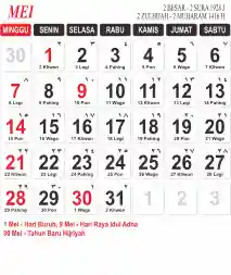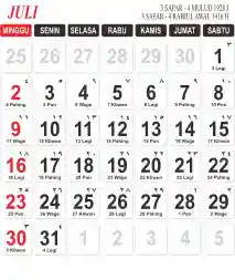 Template Kalender Jawa + Hijriah Vector