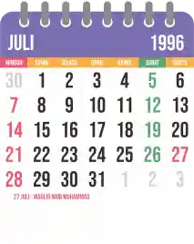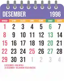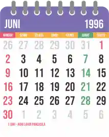 Template kalender 1996 yang bertemakan lucu dan moderen. Bentuknya simple tanpa tanggal hijriah dan tanggal jawa. Cocok buat kebutuhan kalender yang sifatnya universal.