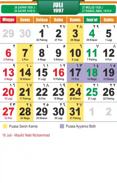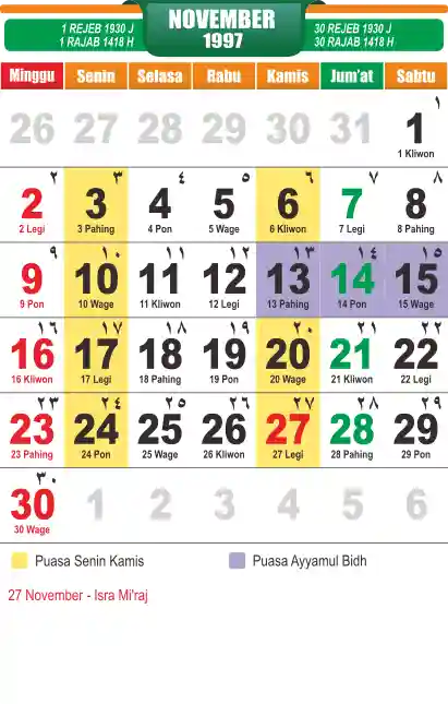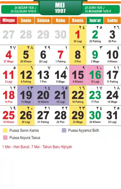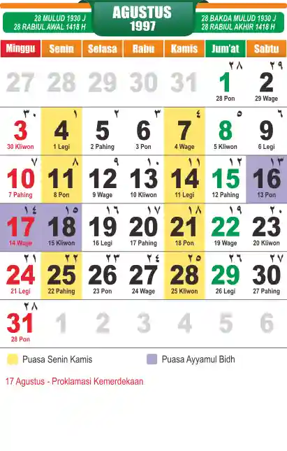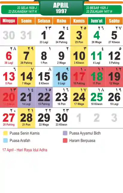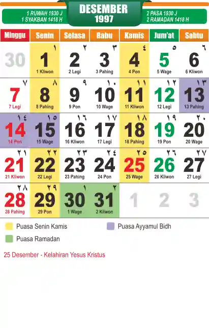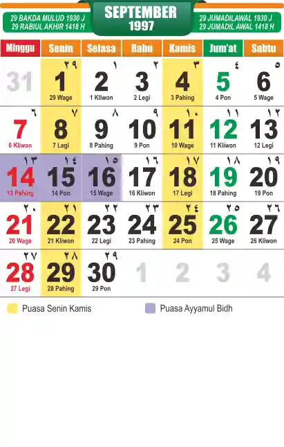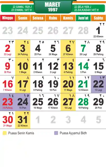 Template kalender puasa 1997, cocok sekali buat anda yang ingin cetak kalender yang bermanfat buat umat.