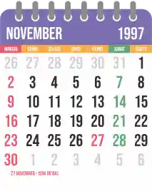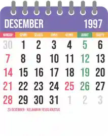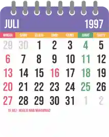 Template kalender 1997 yang bertemakan lucu dan moderen. Bentuknya simple tanpa tanggal hijriah dan tanggal jawa. Cocok buat kebutuhan kalender yang sifatnya universal.
