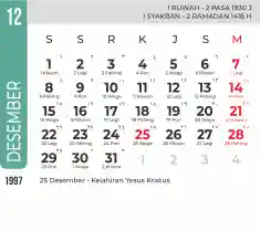 File template kalender 1997 yang editable (bisa anda edit) untuk CorelDRAW, format warna cmyk dan rgb untuk kebutuhan percetakan. Bisa custom hari libur (gunakan fitur tabel dibawah untuk edit).