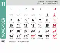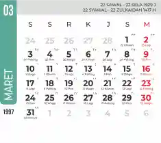 Template kalender 1997 dengan konsep minimalis modern dengan warna yang soft, cocok sekali buat kantor / bisnis seperti bank.