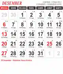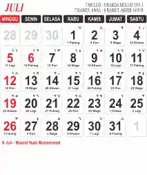 Template Kalender Jawa + Hijriah Vector