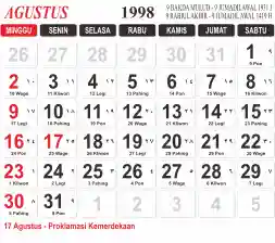 Tema kalender 1998 yang cocok buat desain kalender yang lebih lebar, cocok buat kalender kantor atau desain yang lebih minimalis.