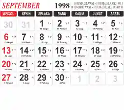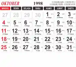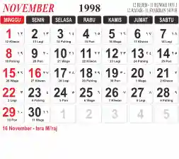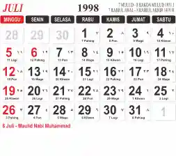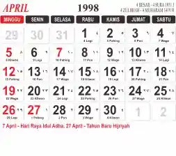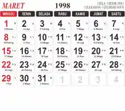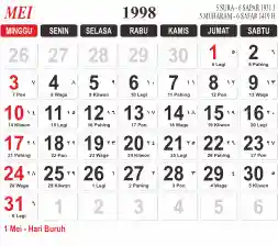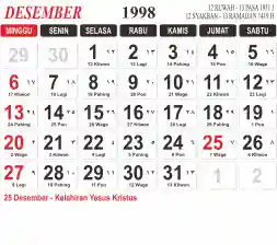 List hari libur tahun 1998 pada Tema 3 (Wide)