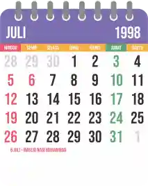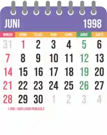Template kalender 1998 yang bertemakan lucu dan moderen. Bentuknya simple tanpa tanggal hijriah dan tanggal jawa. Cocok buat kebutuhan kalender yang sifatnya universal.