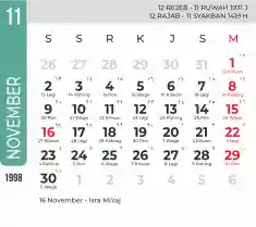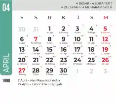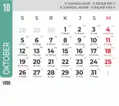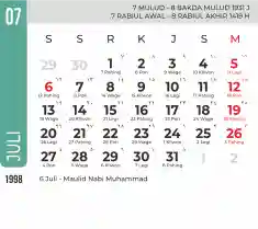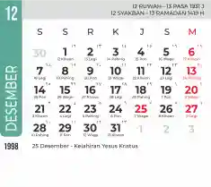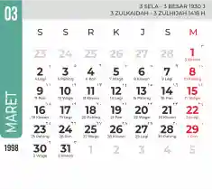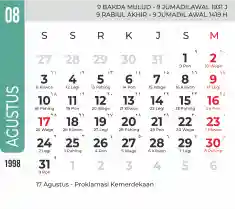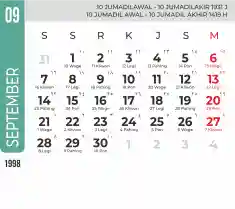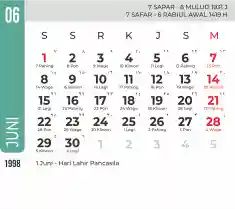 Template kalender 1998 dengan konsep minimalis modern dengan warna yang soft, cocok sekali buat kantor / bisnis seperti bank.