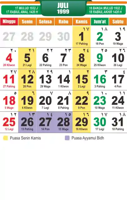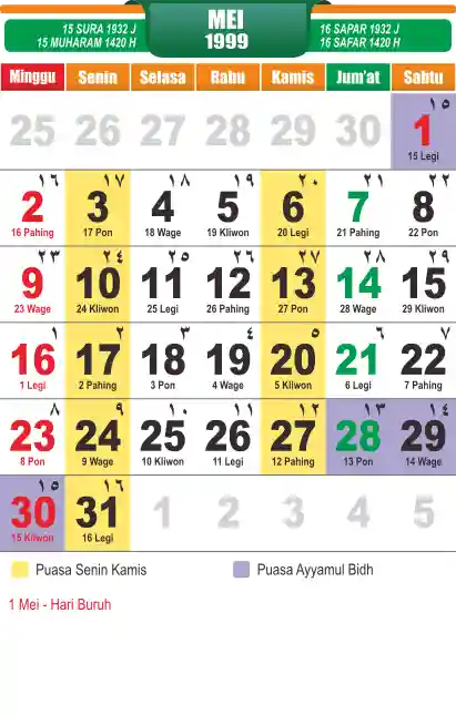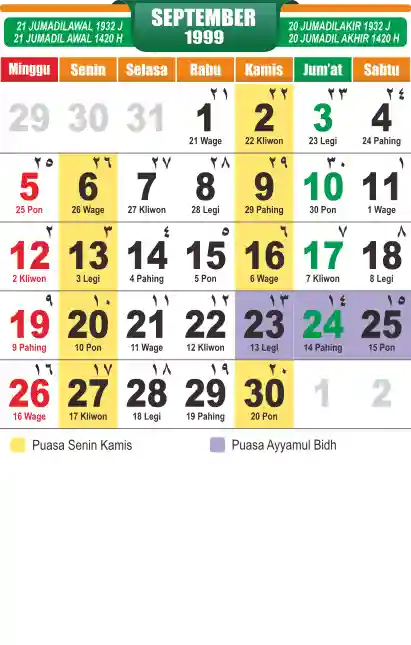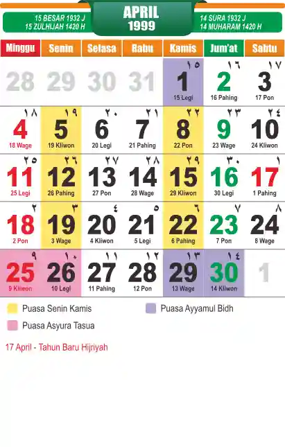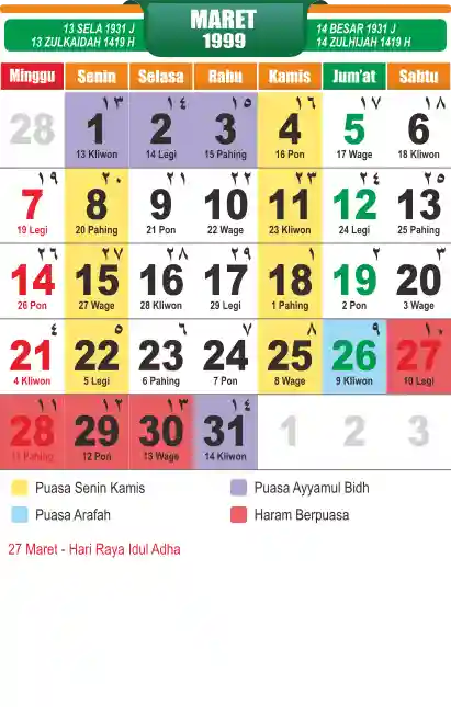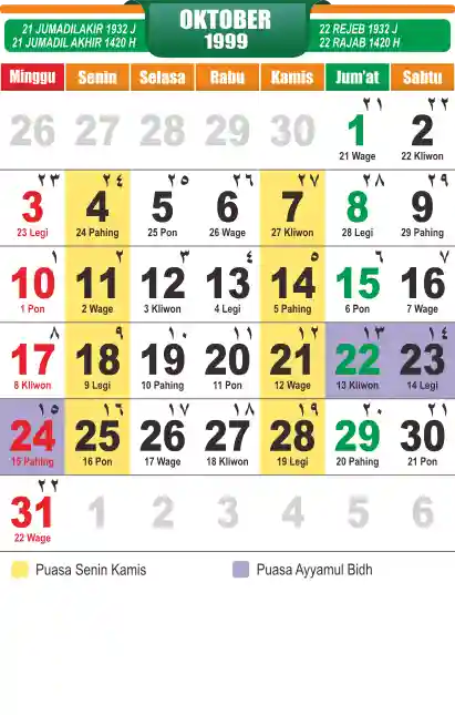 Template kalender puasa 1999, cocok sekali buat anda yang ingin cetak kalender yang bermanfat buat umat.