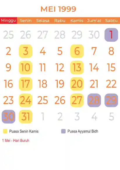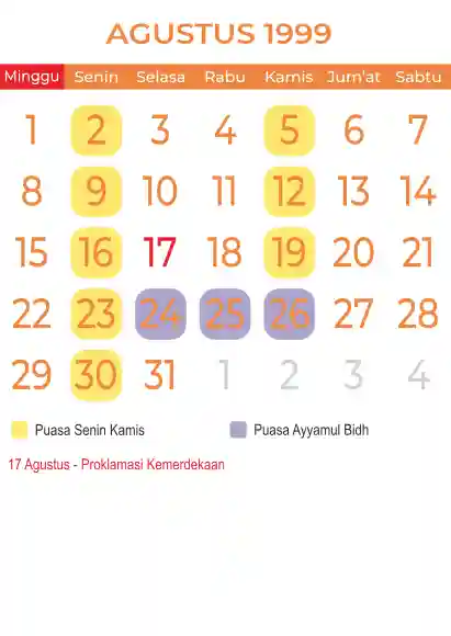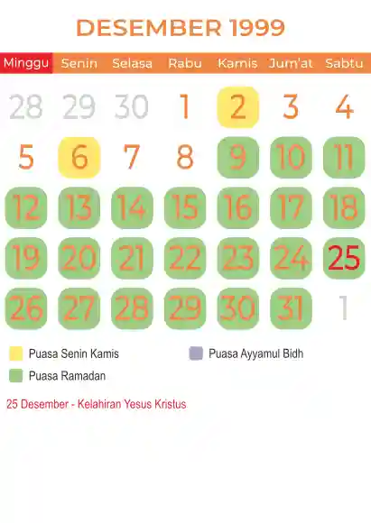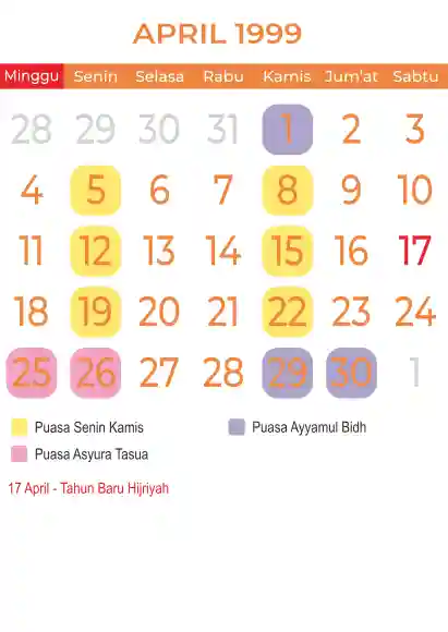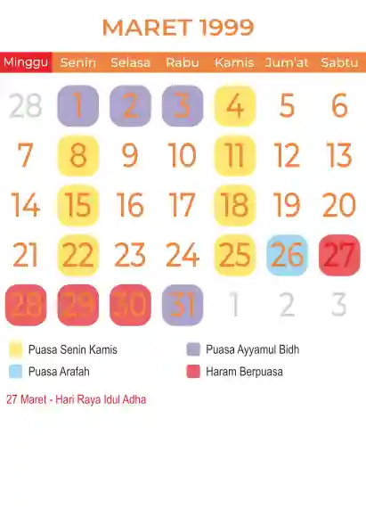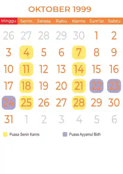 Template kalender puasa 1999, Versi yang lebih simple, cocok sekali buat anda yang ingin cetak kalender yang bermanfat buat umat.