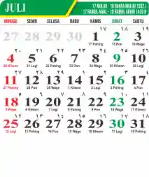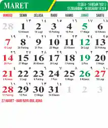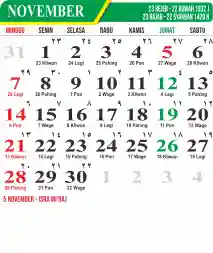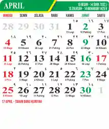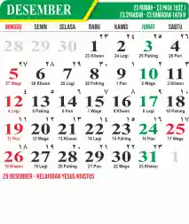 Template Kalender Jawa + Hijriah Vector