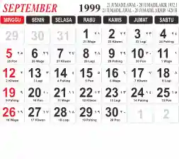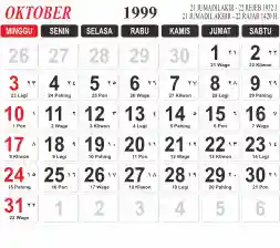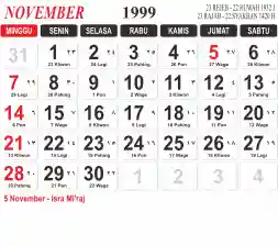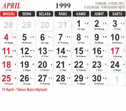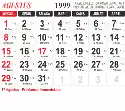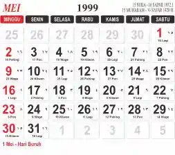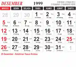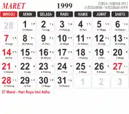 List hari libur tahun 1999 pada Tema 3 (Wide)