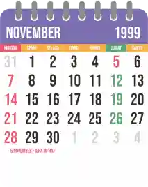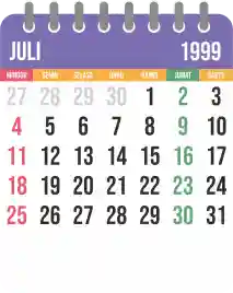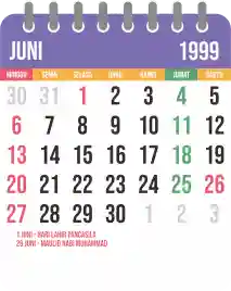 Template kalender 1999 yang bertemakan lucu dan moderen. Bentuknya simple tanpa tanggal hijriah dan tanggal jawa. Cocok buat kebutuhan kalender yang sifatnya universal.
