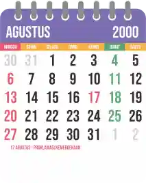 Template kalender 2000 yang bertemakan lucu dan moderen. Bentuknya simple tanpa tanggal hijriah dan tanggal jawa. Cocok buat kebutuhan kalender yang sifatnya universal.