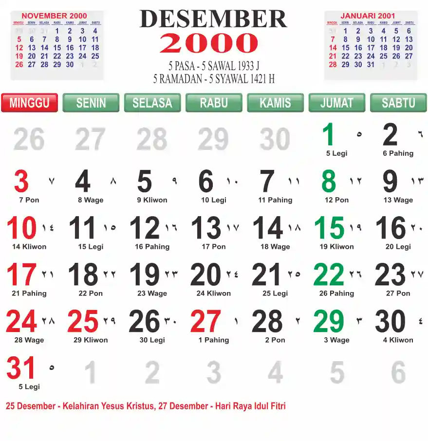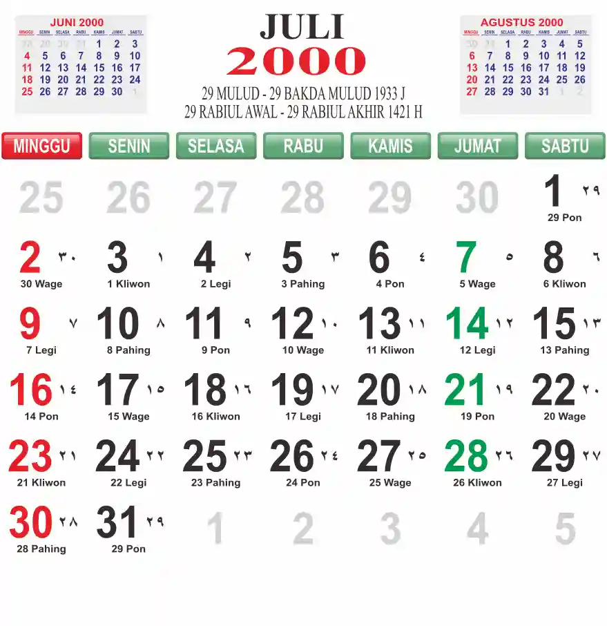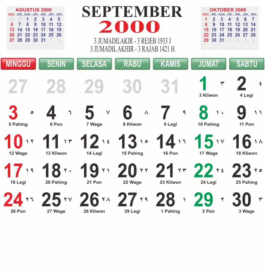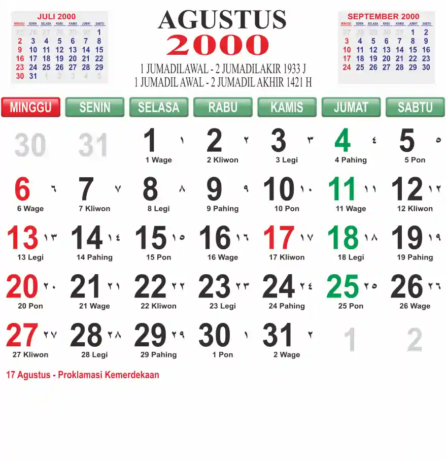 Template kalender 2000 lembaran besar jumbo yang mudah di baca dari jarak jauh. Kalender ini biasanya di cetak 1 lembar per bulan.