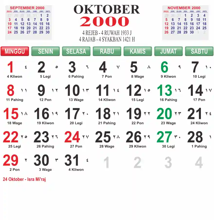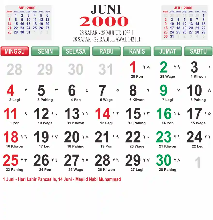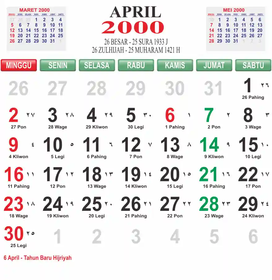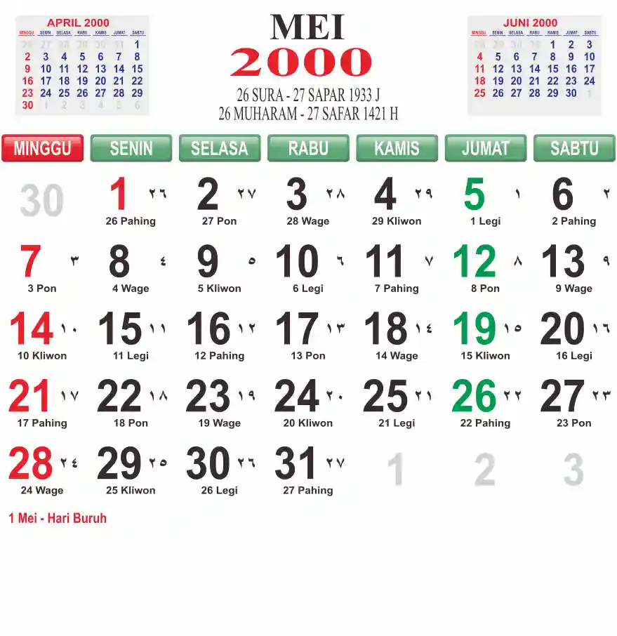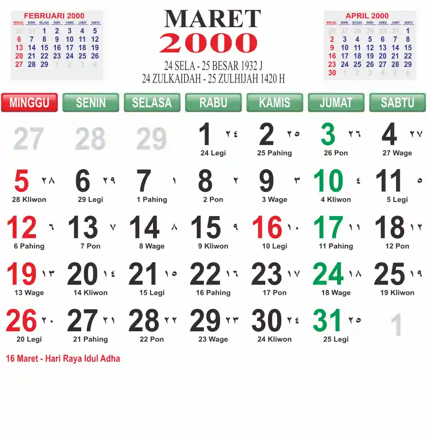 Template kalender 2000 lembaran besar jumbo yang mudah di baca dari jarak jauh. Kalender ini biasanya di cetak 1 lembar per bulan.