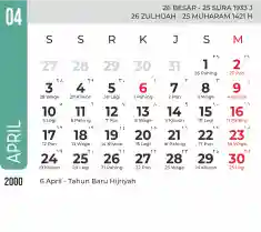 List hari libur tahun 2000 pada Tema 7